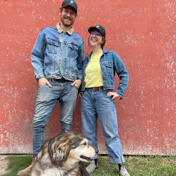 Denim tuxedos every day! Thomas is active on the Sask Organics Board. They have a cat named Monroe and a dog named Marlowe.